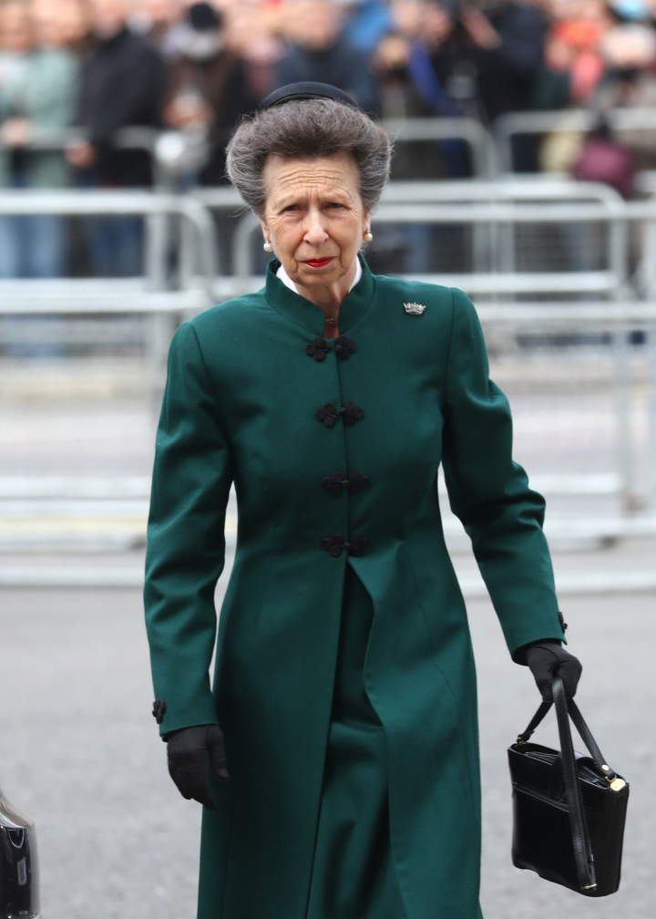 Letizia no ha sido la única que ha elegido el verde oscuro para recordar al duque de Edimburgo. Su viuda, Isabel II, también ha vestido un abrigo y sombrero en este color, ambos con rematados en negro. Su hija, la princesa Ana, también ha llegado a la misa con vestido y abrigo verdes.