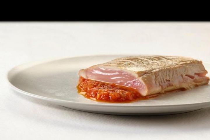 - A la hora de su consumo, pasamos el lomo del bonito brevemente por la plancha; lo cortamos en filetes y los acompañamos en el plato de la salsa de tomate.
