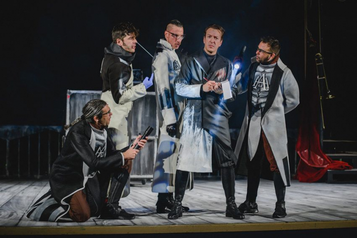 A finales de 2017, los chicos de Ron Lalá estaban en un punto crucial de su carrera. Tras una serie de éxtios rotundos y de triunfar a lo grande con su magnífico musical, Cervantina (Premio Max al mejor musical), los ronlaleros comenzaban a tener una gran repercursión con sus proyectos individuales. Álvaro Tato, el filólogo de guardia, seguía con sus magníficas adaptaciones de clásicos para la CNTC y con sus Comedia multimedia (2016) y Ojos de agua (2014), ambas dirigidas por su compañero Yayo Cáceres; Íñigo Echevarría, Miguel Magdalena, Daniel Rohalver... todos seguían con una carrera estelar, el teatro (¿su teatro?) corría peligro de desintegración. Afortunadamente, Crimen y telón nos confirma que el teatro está muy vivo y que el proyecto ronlalero sigue activo y deslumbrante.