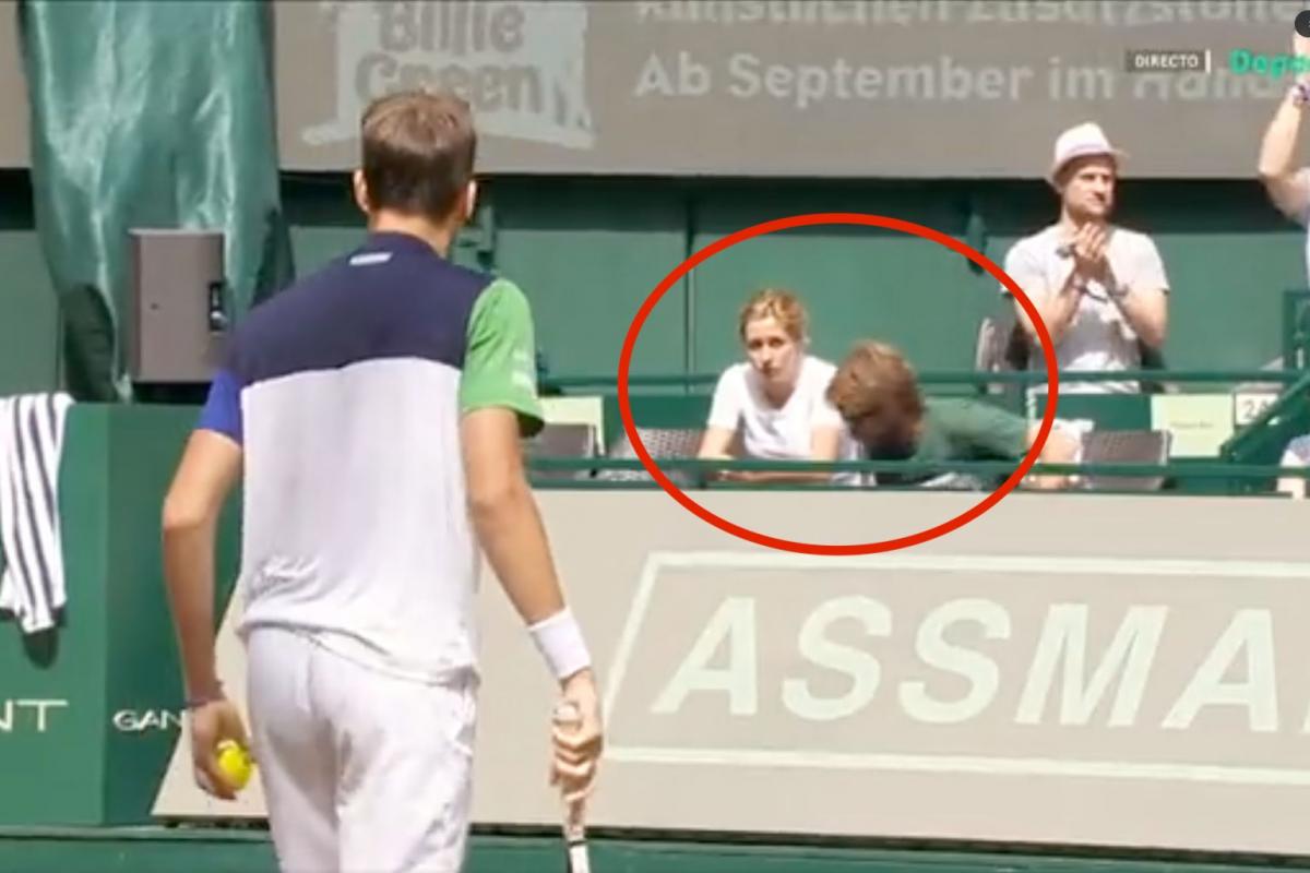 Medvedev, que ya ha protagonizado algún que otro momento polémico por su fuerte carácter, perdió completamente los papeles en un momento del partido y pagó su frustración con su entrenador, que estaba siguiendo el partido desde la grada a escasos metros de él.