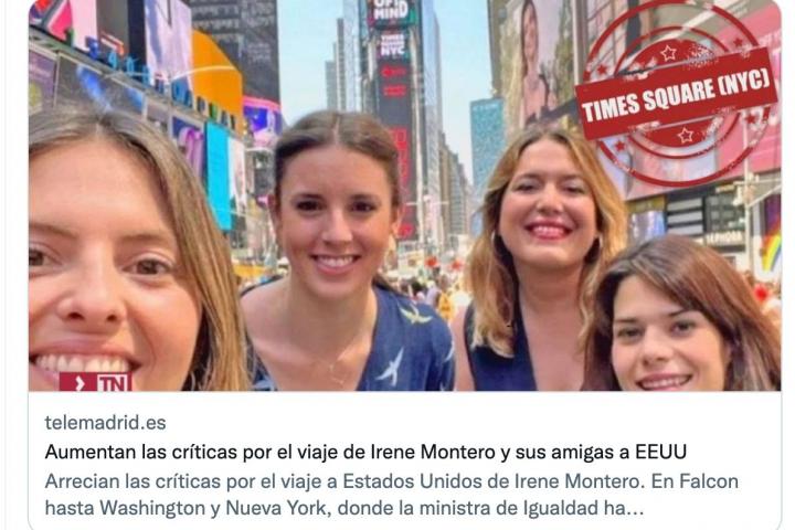 La ministra de Igualdad estuvo hace unos días en Estados Unidos, donde estuvo reunida con representantes de la Casa Blanca y de la ONU. En dicho viaje, Montero se hizo una foto junto a su equipo en Times Square, Nueva York, y ha recibido multitud de críticas por parte de la derecha mediática.