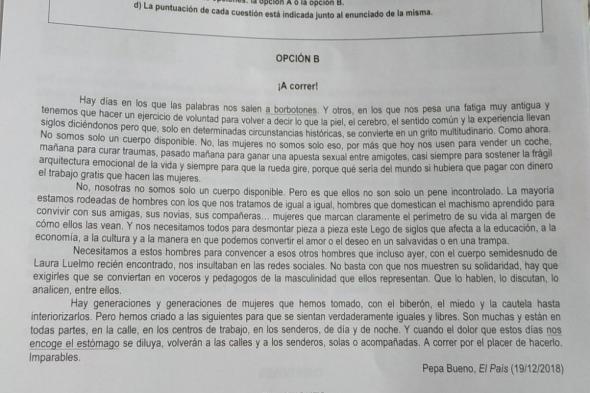 El texto feminista de la Selectividad de Andalucía que ha generado multitud de comentarios