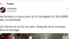 Los camareros están acostumbrados a ver de todo en sus horas de trabajo y la cuenta de Twitter @soycamarero da buena muestra de ello: pañales usados que dejan los clientes en las mesas, gente que llega al bar con muletas y se olvidan de ellas al marcharse, peticiones estrambóticas de todo tipo...