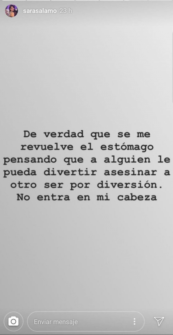 Sálamo había pedido a sus seguidores que presionaran a Instagram para que la cuenta fuese cancelada: "De verdad que se me revuelve el estómago pensando que a alguien le pueda divertir asesinar a otro ser por diversión. No entra en mi cabeza"