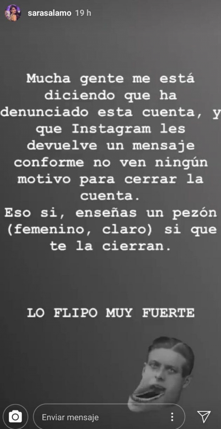 El tremendo cabreo de Sara Sálamo con Instagram: "Se me revuelve el estómago"