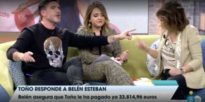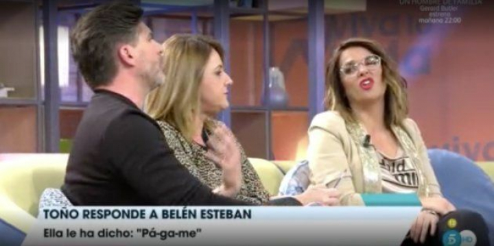 "¿Tú le has pagado de tu cuenta 33.814,95 euros a la cuenta de Belén Esteban después de que tú, en este sofá, me dijeras que no?", preguntó Moreno.