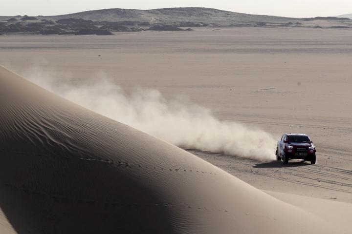 En caso de necesitar alguna pieza de repuesto que no tenga en su coche, deberá esperar al camión que haga de asistencia para el Toyota Hilux del piloto asturiano, lo que puede tardar varias horas en llegar.