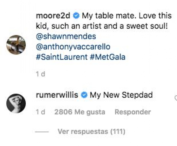 En su entorno se toman este tipo de comentarios de la mejor forma: con humor. Su propia hija Rumer Willis —fruto de su matrimonio con Bruce Willis— ha troleado a su madre por la foto que compartió con el cantante Shawn Mendes de 20 años, durante la Gala Met de este lunes.