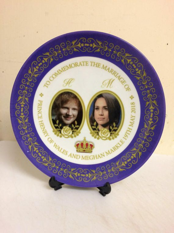 En honor a la próxima boda real británica, la tienda londinense ModernChintz ha creado un plato conmemorativo con las caras del príncipe Harry y Meghan Markle, que se casarán el próximo 19 de mayo. No obstante, la tienda ha cometido un pequeño ¿error?: han confundido al cantante británico Ed Sheeran con el príncipe, con el que comparte color de pelo.
