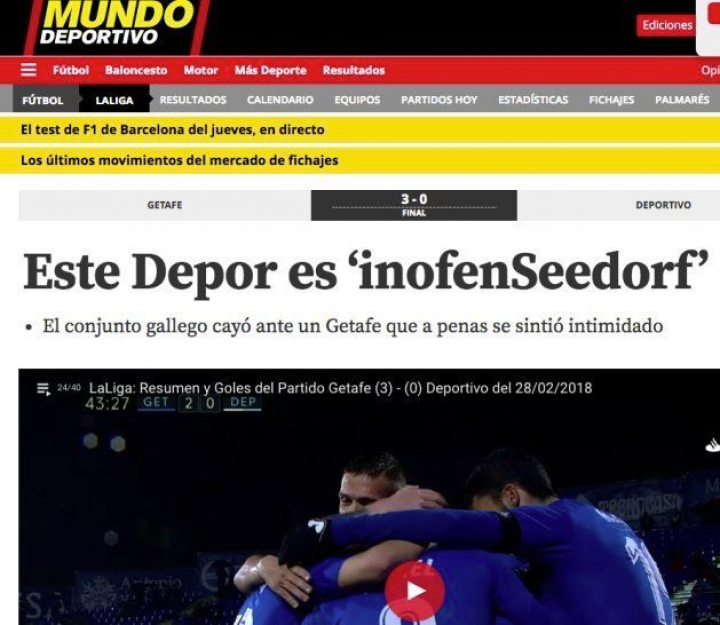 El Getafe endosó este miércoles por la noche una dolorosa goleada al Deportivo de la Coruña, que deja a los gallegos con 18 puntos, a dos de la salvación (que podrían ser más si el Levante gana este jueves al Alavés.