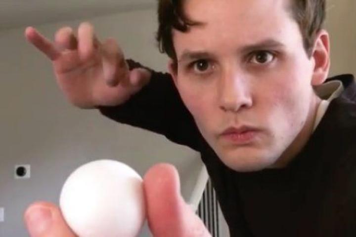 En el vídeo vemos a un hombre que muestra una pelota de tenis de mesa. Es, como pueden ver, una bola pequeña y blanca que agarra con dos dedos. Pero inexplicablemente y sin que la bola desaparezca de la imagen, la pequeña bola se convierte en una gran bola blanca que ocupa toda su mano.