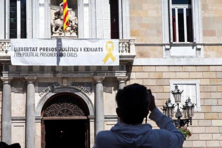 El TSJC ordena a los Mossos retirar de la Generalitat la pancarta de apoyo a los presos