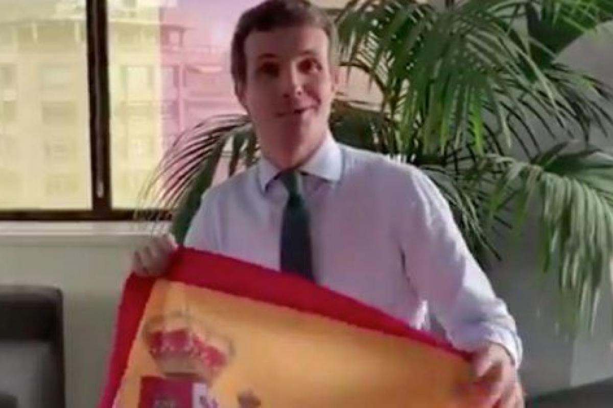 "Quiero animarte a que pongas nuestra bandera en tu balcón, o en un ventana, es decir, en nuestro corazón". El presidente del Partido Popular, Pablo Casado, ha invitado este martes a los ciudadanos a "mostrar con orgullo" la bandera de España colocándola en los balcones, de forma que coincida con la celebración de la Fiesta Nacional el próximo 12 de octubre.