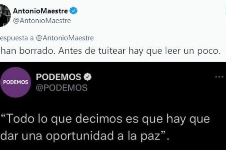 Tras estos tuits de Maestre, el de Podemos ya aparece como borrado. “Antes de tuitear hay que leer un poco”, escribió el periodista.
