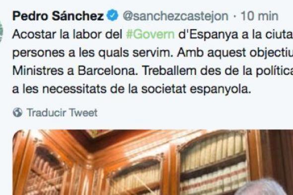 Pero Sánchez ha querido tener otro gesto y ha lanzado dos tuits, uno de ellos en catalán. En los mensajes señala: "Acercar la labor del Gobierno a la ciudadanía de todo el país, a las personas a las que servimos. Con este objetivo hemos celebrado hoy el Consejo de Ministros en Barcelona. Trabajamos desde la política y el diálogo para dar respuesta a las necesidades de la sociedad española".