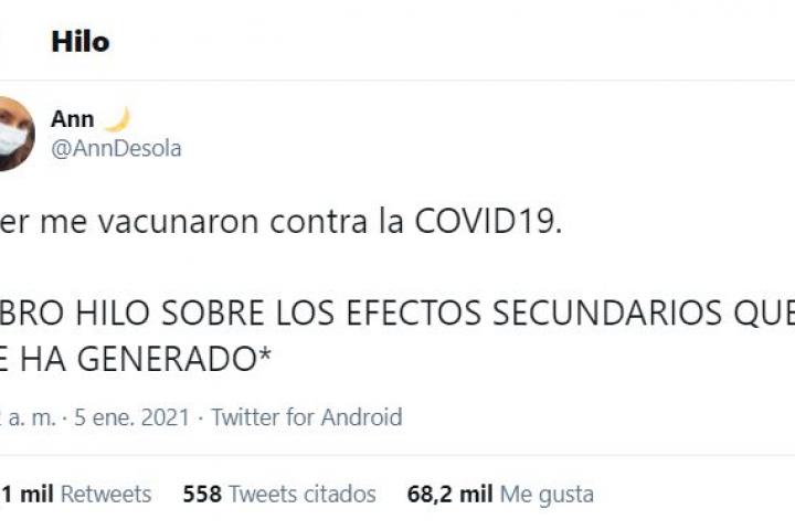 El tuit sobre los efectos secundarios de la vacuna que bate récords en Twitter: y con razón
