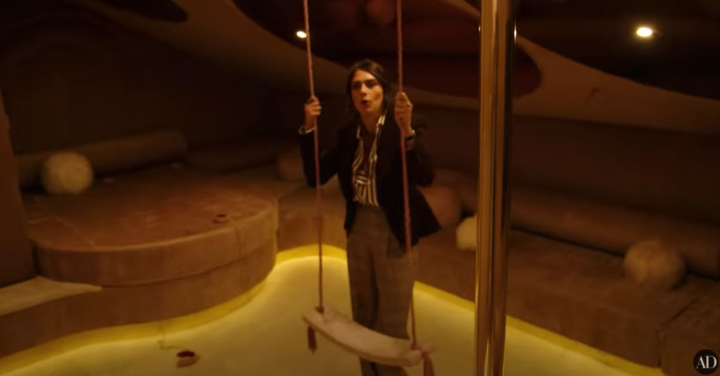 La propia Delevingne hace los honores y se introduce por la vagina para llegar a la otra habitación, un cuarto de invitados con una litera con espacio para dos camas. Desde ese dormitorio, el otro lado del túnel se ve como una lavadora rosa con aires psicodélicos.