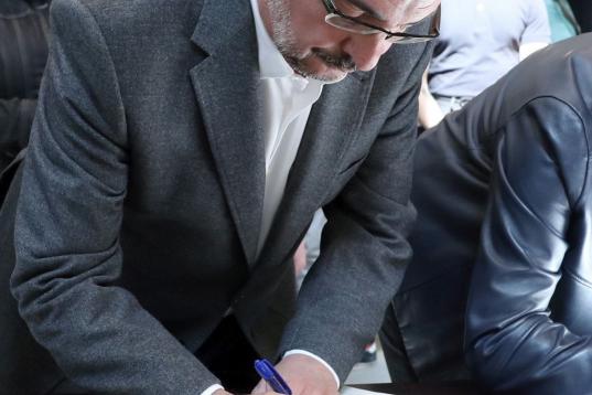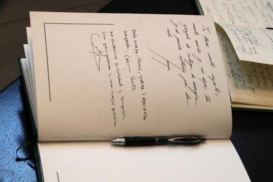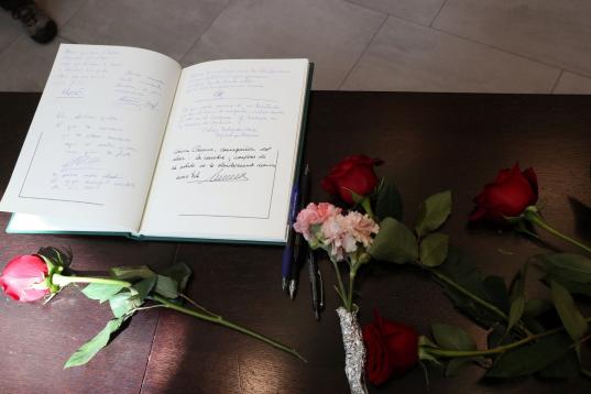 La firma de la vicepresidenta del Gobierno en el libro de condolencias.