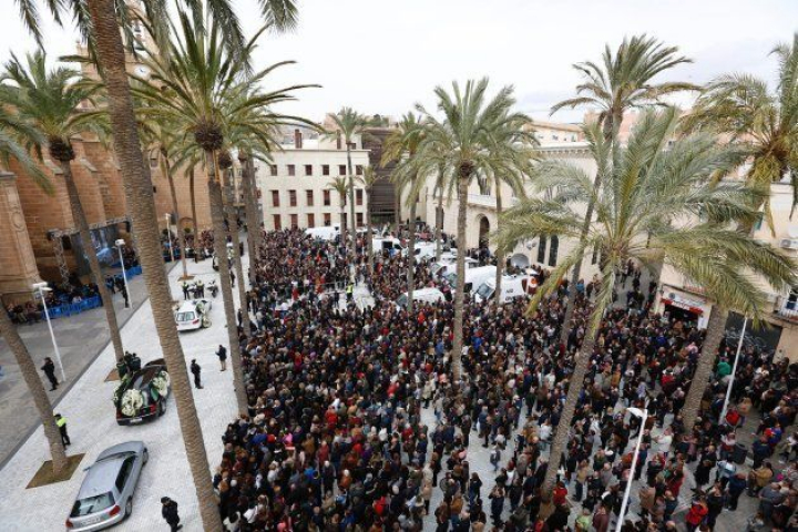 Unas horas antes, sobre las 10:30 de la mañana, habían estado arropados por miles de personas -5.000, según el cálculo de Europa Press- en la misa funeral celebrada en la Catedral de Almería por el obispo de la diócesis almeriense, Adolfo González Montes. Dos pantallas gigantes colocadas a los lados del pórtico de entrada del templo permitían seguir la ceremonia desde fuera.