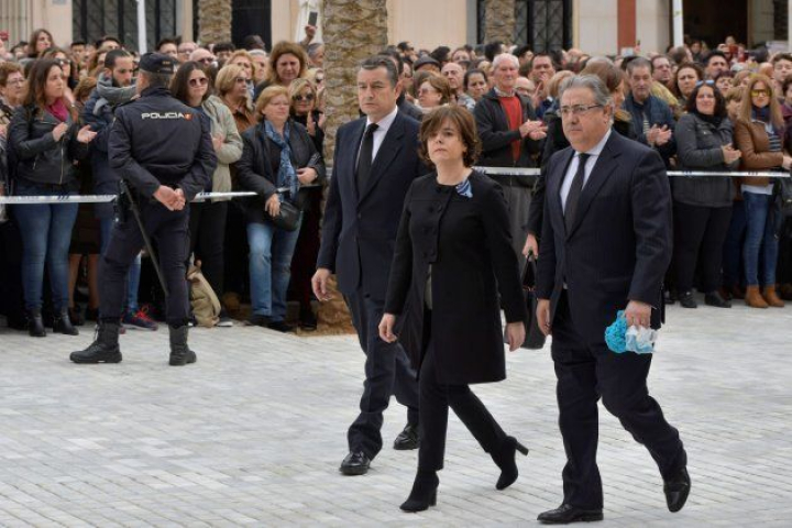 En el interior del templo, con un fuerte olor a incienso, se encontraban ya la vicepresidenta del Gobierno, Soraya Saénz de Santamaría, la presidenta de la Junta andaluza, Susana Díaz, y el ministro del Interior, Juan Ignacio Zoido, quien no se ha separado de la bufanda azul favorita de Gabriel que su madre ha llevado durante los 12 días de su búsqueda sin descanso y que ella ha querido regalarle al ministro.