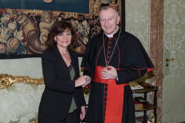 La vicepresidenta del Gobierno, Carmen Calvo, se ha trasladado este lunes hasta la Santa Sede para reunirse con el secretario de Estado del Vaticano, el cardenal Pietro Parolin.