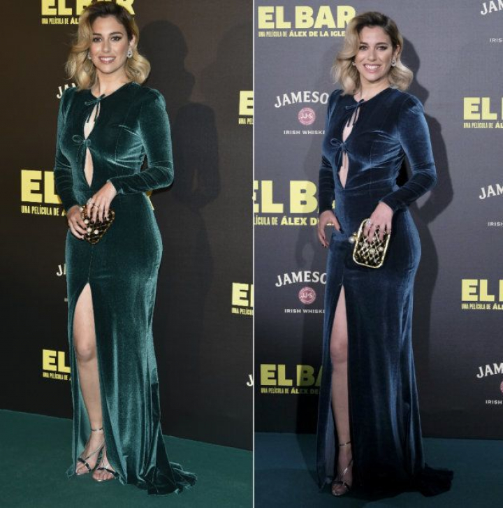 El escultural vestido de Fernando Claro llamó la atención por ajustarse perfectamente al estilo de la actriz, así como por su original escote... y por su color. Porque las fotos lo reflejan de dos formas diferentes: ¿era verde o era azul?