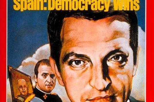 Esta portada de Time del 27 de junio de 1977, en la que de Franco y vía el Rey se llega a un primer plano de Adolfo Suárez, llevaba por titular "España: la democracia gana".