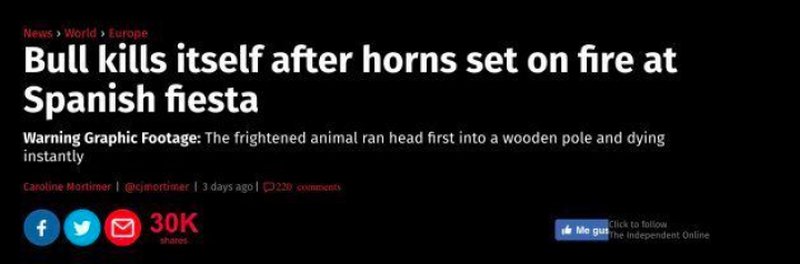 El diario británico The Independent también se hacía eco de la noticia: "Un toro se suicida después de que le prendiesen los cuernos en una fiesta española".