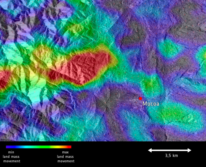 La imagen de la ESA, por su parte, muestra cómo los satélites, capaces de ver a través de las nubes, han captado la fase posterior del desastre: el movimiento de las tierras, que comenzó en una montaña y se desplazó ladera abajo hasta pasar por encima de la ciudad y dejarla convertida en una mole de lodo.