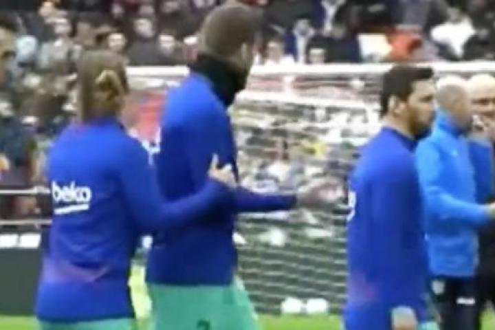 Piqué, que ya se disponía a reunirse, mostró su enfado pidiendo explicaciones al argentino mientras Griezmann trataba de mediar entre ambos.