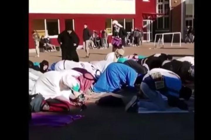 En las imágenes hay una veintena de alumnos rezando arrodillados y gritando "Alá es grande".