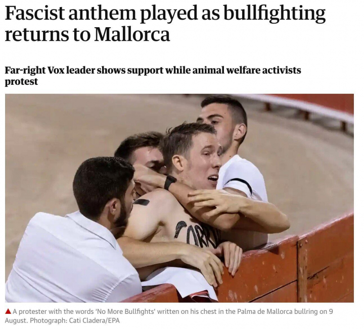 El periódico británico The Guardian ha destacado en el titular de su información, divulgada también en redes, que sonó “el himno fascista en el regreso de los toros a Mallorca”.