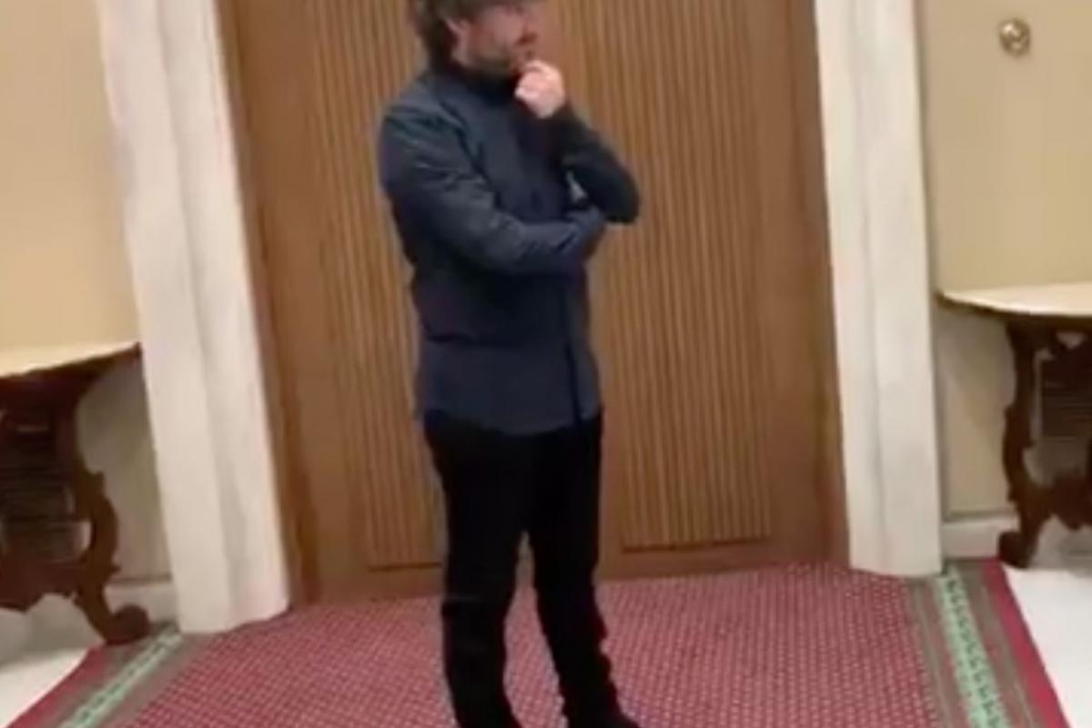 El momento, que ha tenido lugar este mismo viernes como señala el propio Évole, le muestra a él en el umbral de una puerta. Durante 40 segundos que se hacen largo por el misterio, el periodista espera mirando lo que hay más allá de la puerta, un par de personas salen... y de repente aparece el papa, vestido como tal.