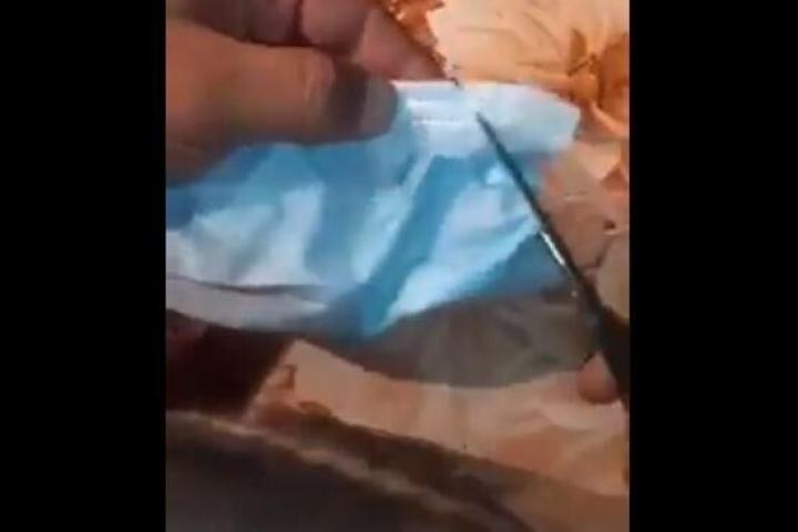 En el vídeo en cuestión se ve a una persona recortando una mascarilla. Hasta ahí todo parece normal. Cuando se ve la verdadera intención paródica del vídeo es cuando empiezan a aparecer del interior del tapabocas objetos como una tarjeta de teléfono móvil, chips, cámaras de vídeo y hasta teléfonos móviles, comida de gatos y un taladro.