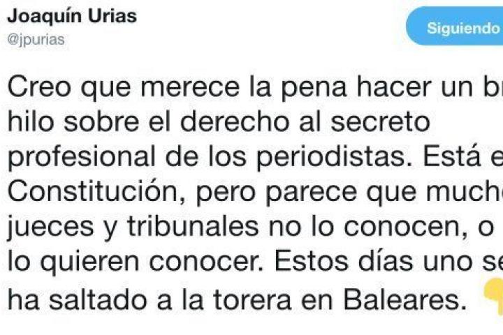 El profesor de Derecho Constitucional y exletrado del Tribunal Constitucional Joaquín Urías, que además ha formado a miles de informadores en la Facultad de Comunicación de Sevilla, se ha detenido a explicar bien la gravedad de estos hechos a través de un hilo de Twitter que se ha convertido en viral.