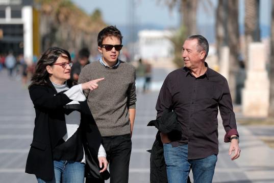 Íñigo Errejón, candidato de Más País, ha ido a pasear por la playa de la Malvarrosa de Valencia junto a Mónica Oltra y Joan Baldoví, de Compromís.