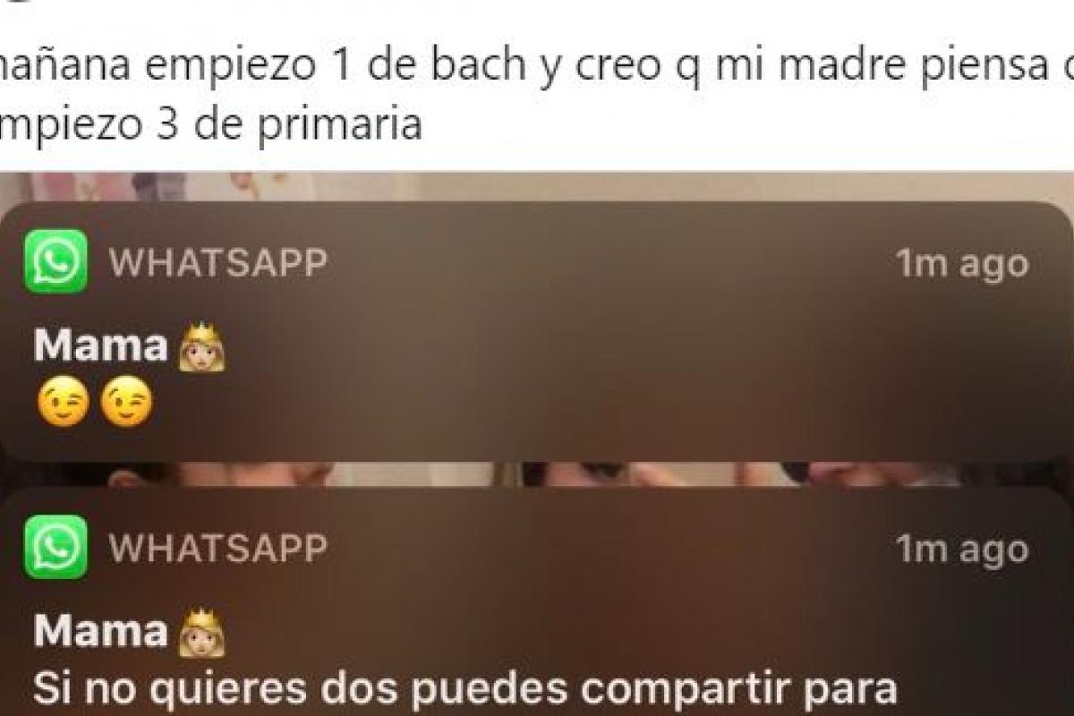 La autora de la publicación ha escrito que empieza primero de bachillerato y que, por el mensaje que ha recibido de su progenitora, parece que está empezando tercero de primaria. En la captura de pantalla se puede leer la maravillosa conversación que han tenido.