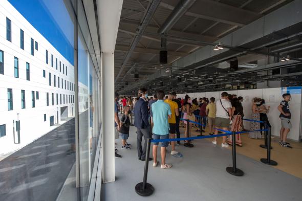 Frente a la media habitual de 22.000 dosis de vacunas inoculadas diariamente, el centro hospitalario administró este miércoles algo menos de 20.000. Una reducción que también se ha visto condicionada por la falta de viales de Pfizer que de manera reiterada ha denunciado el Gobierno regional.