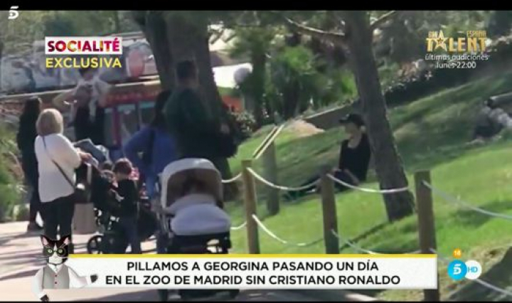 En su visita al Zoo de Madrid, Georgina fue grabada por Socialité, el programa de Telecinco que presenta María Patiño. Desde el espacio televisivo mostraron unas imágenes en las que Rodríguez aparece sentada dentro del recinto de los animales.