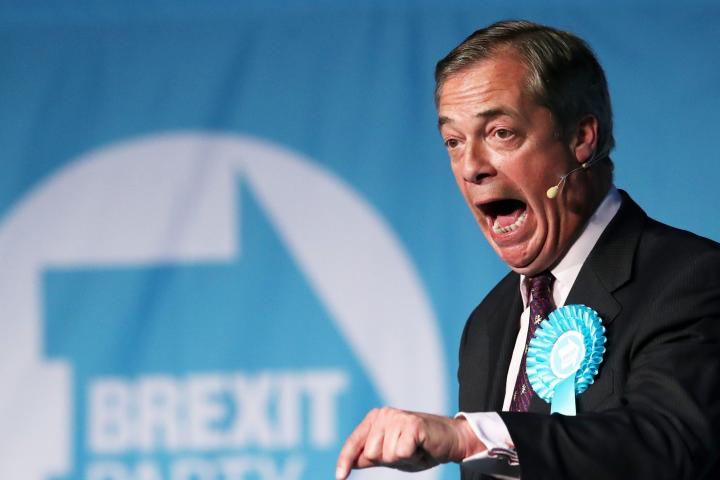 El Brexit Party sacaría el 37% de los votos, según la encuesta de YouGov para el periódico The Times, la última disponible. Superaría así el éxito logrado hace cinco años, cuando se hizo con el 33% de los votos al frente de UKIP.