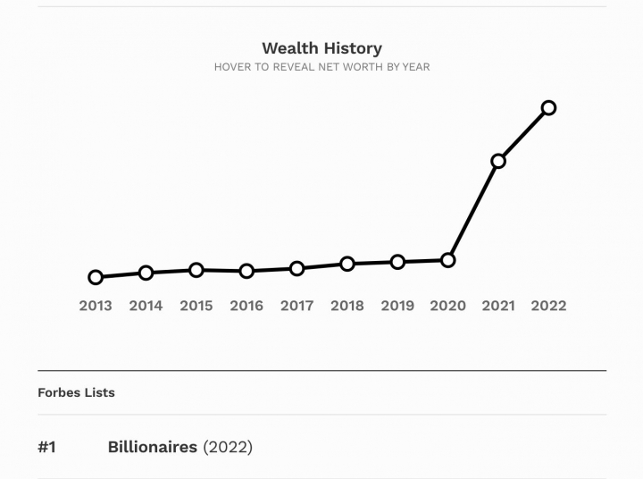 No le ha ido mal con todos estos proyectos, y se puede comprobar de un rápido vistazo a esta gráfica de Forbes sobre la evolución de su riqueza: