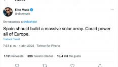 Un anuncio al que ha respondido, para sorpresa de muchos, Musk en Twitter. El magnate ha afirmado que España “debería construir una matriz solar masiva. Podría alimentar a toda Europa”.