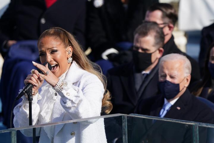 De tota manera, el passat 20 de gener en la cerimònia de jurament del càrrec de Joe Biden i Kamala Harris, la polifacètica cantant Jennifer López (1969) no va cantar «America the Beautiful», sinó que va entonar la cançó «This Land is Your Land» del cantautor de folk i membre de l’esquerra estatunidenca Woody Guthrie (1912-1967), amb la qual té concomitàncies, atès que fa un repàs de la geografia dels EUA de costa a costa, de baix a dalt, d’una terra que reivindica oberta a tu i a mi, a tota la gent. I el que són les coses, Guthrie sovint actuava amb un cartellet enganxat a la guitarra on hi deia: «Aquesta màquina mata feixistes».