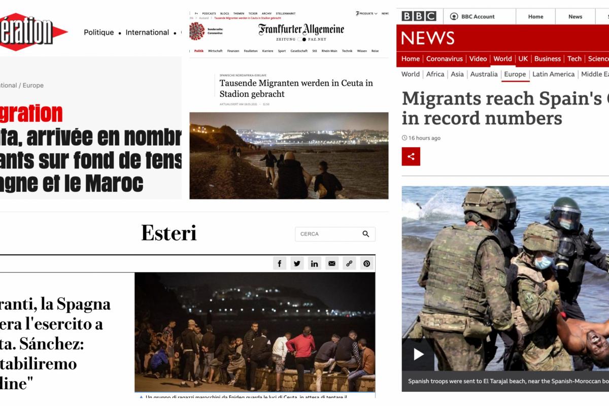 La llegada a Ceuta de miles de inmigrantes desde las costas marroquíes y las consecuencias que está teniendo en las relaciones entre España y Marruecos ha saltado a la prensa internacional. Los titulares de los medios, sobre todo los europeos, abordan tres flancos: la crisis humanitaria, la pugna diplomática y la relevancia del problema, siendo España frontera sur de la Unión Europea.