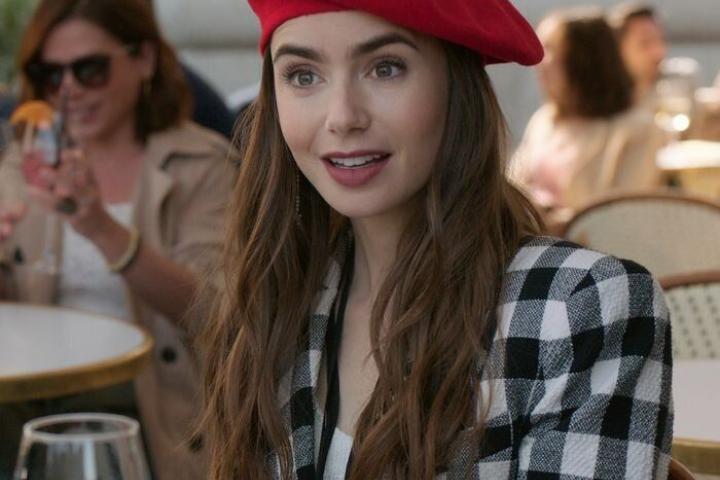 Lo primero que hace al llegar a París es comprarse un pain au chocolat y grabarse dándole un buen mordisco para subir a su cuenta de Instagram. En los diez capítulos que dura la serie vemos croissants, baguettes y, por supuesto, boinas.