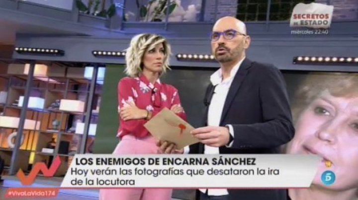 Desde el comienzo de la edición de este sábado, García estuvo avanzando que a lo largo de la tarde el colaborador iba a desvelar unas fotos que hizo en su día a la periodista Encarna Sánchez y con las que se ganó su enemistad —y su ira—.