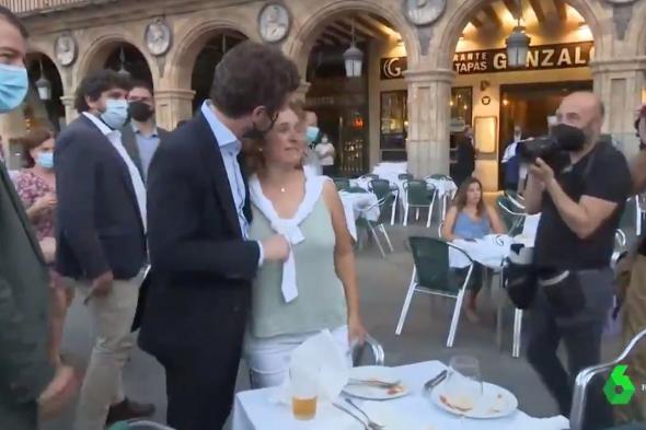 “Bueno como están en terraza”, dice Casado. “No, pero tiene razón”, señala finalmente la mujer, dando la razón a Mañueco. La escena ha sido comentada este viernes en Al Rojo Vivo y está dando mucho juego en redes sociales.
