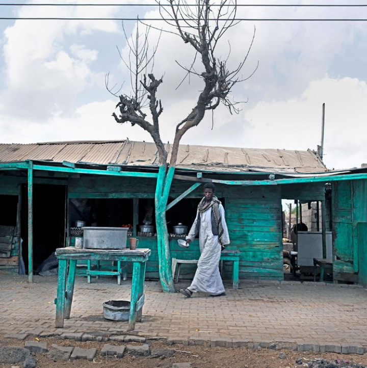 Hay vías de tren abandonadas cubiertas por arena fina de desierto y cuatro casitas típicas en forma de cabaña circular con tejado en punta y aspecto de aves zancudas; las ramas secas de árboles muertos van surgiendo entre lo que una vez fue el hogar de los empleados de la empresa de ferrocarril sudanesa de Puerto Sudán. Viajando por una tranquila carretera mientras un sol abrasador va friendo el tejado de tu coche tienes la sensación de que el agua aquí es más importante que el papel higiénico, aunque este último también sea importante. Los camellos pastan sin rebaño; los rebaños se ven por la noche con los faros. La energía creativa fluye por lo desconocido a medida que la adrenalina bombea en el aliento de otro momento.