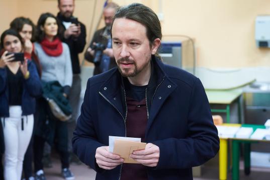 10.04. Vota Pablo Iglesias en Galapagar (Madrid)