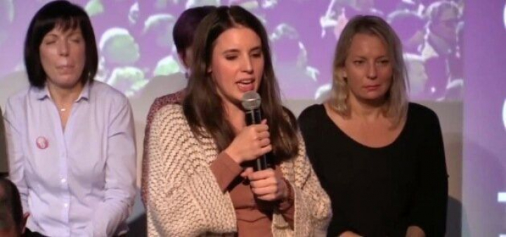 Irene Montero coge el micrófono para cerrar el acto de UP: “Si llevamos cuatro elecciones generales en cuatro años es porque para plantear todas las reformas hace falta tocar la estructura de poder de este país, que aún no ha eliminado el franquismo que lleva dentro. No han querido que haya ni un solo cambio; pretenden cortarlos con repeticiones electorales”.